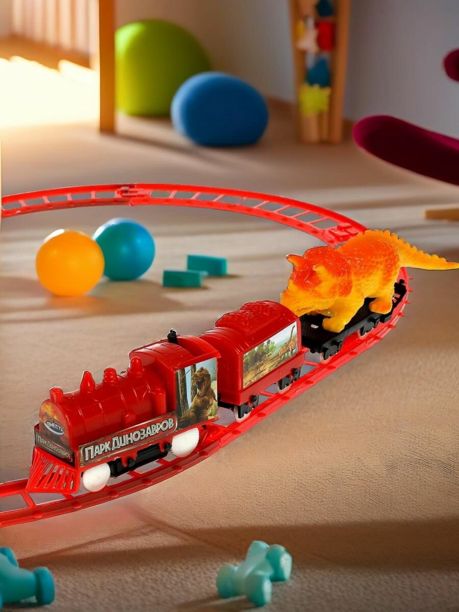 Железная дорога с динозаврами, длина пути 126 см. информация: