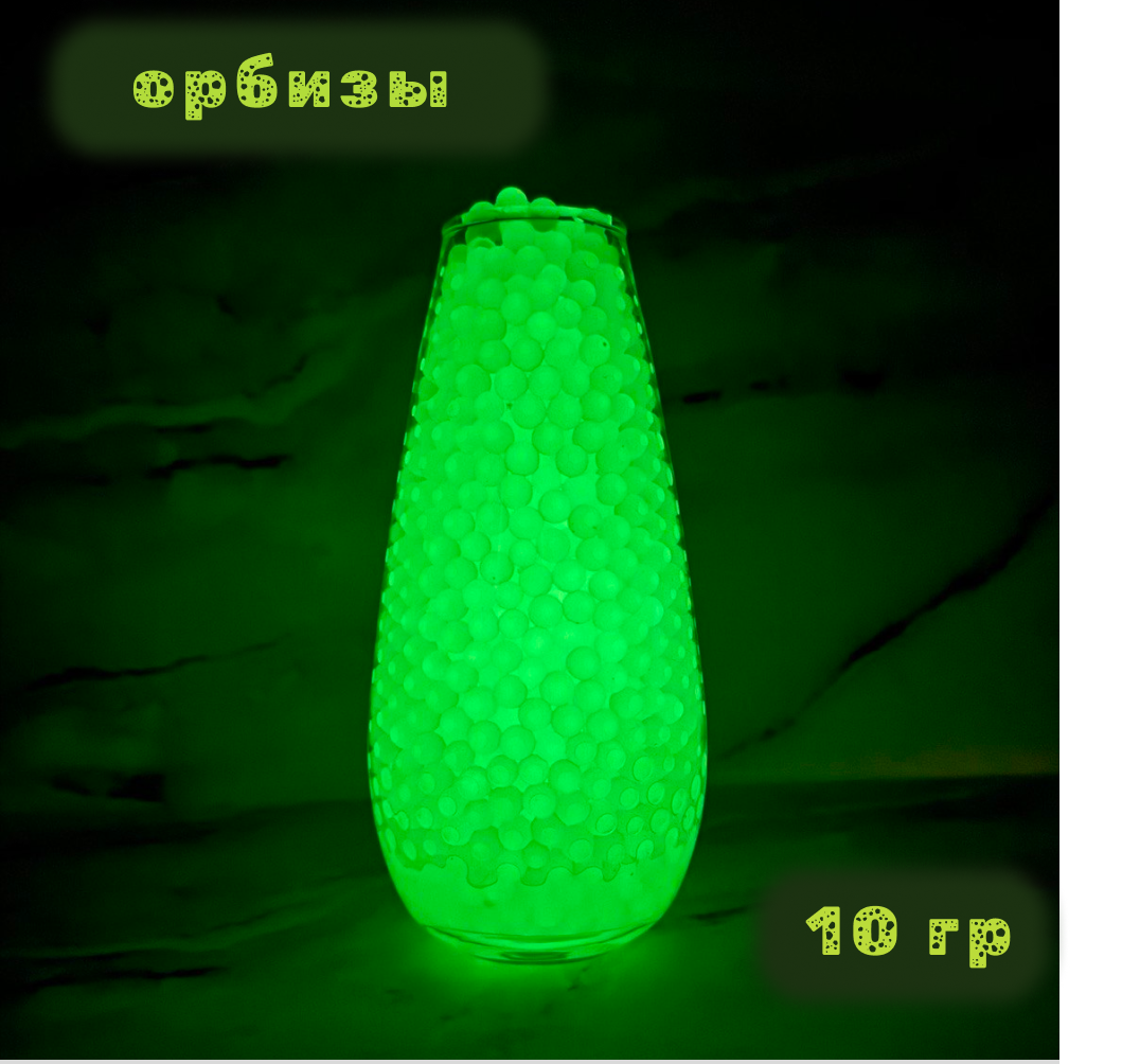 10 цен на Орбизы пульки неоновые светящиеся для опытов. Гидрогелевые шарики для аквагрунта. 7-8мм, для орбибола свтящиеся в темноте