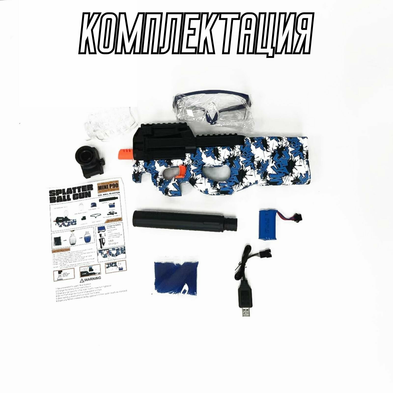 Гидрогелевый Автомат P90 с глушителем стреляющий гелевыми шариками - орбизами / Детское игрушечное оружие / Gel blaster информация: