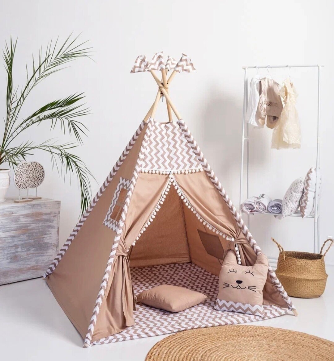 Отзывы на Детский Вигвам с ковриком, окошком, подушка-игрушка, подушка , флажки - 4 шт. и системой антискладывания Tipi Brown