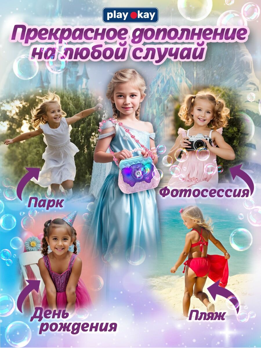 10 цен на Генератор мыльных пузырей Play Okay детский, пистолет камера, светящийся, бирюзовый и розовый
