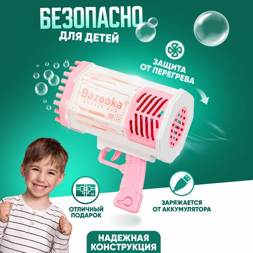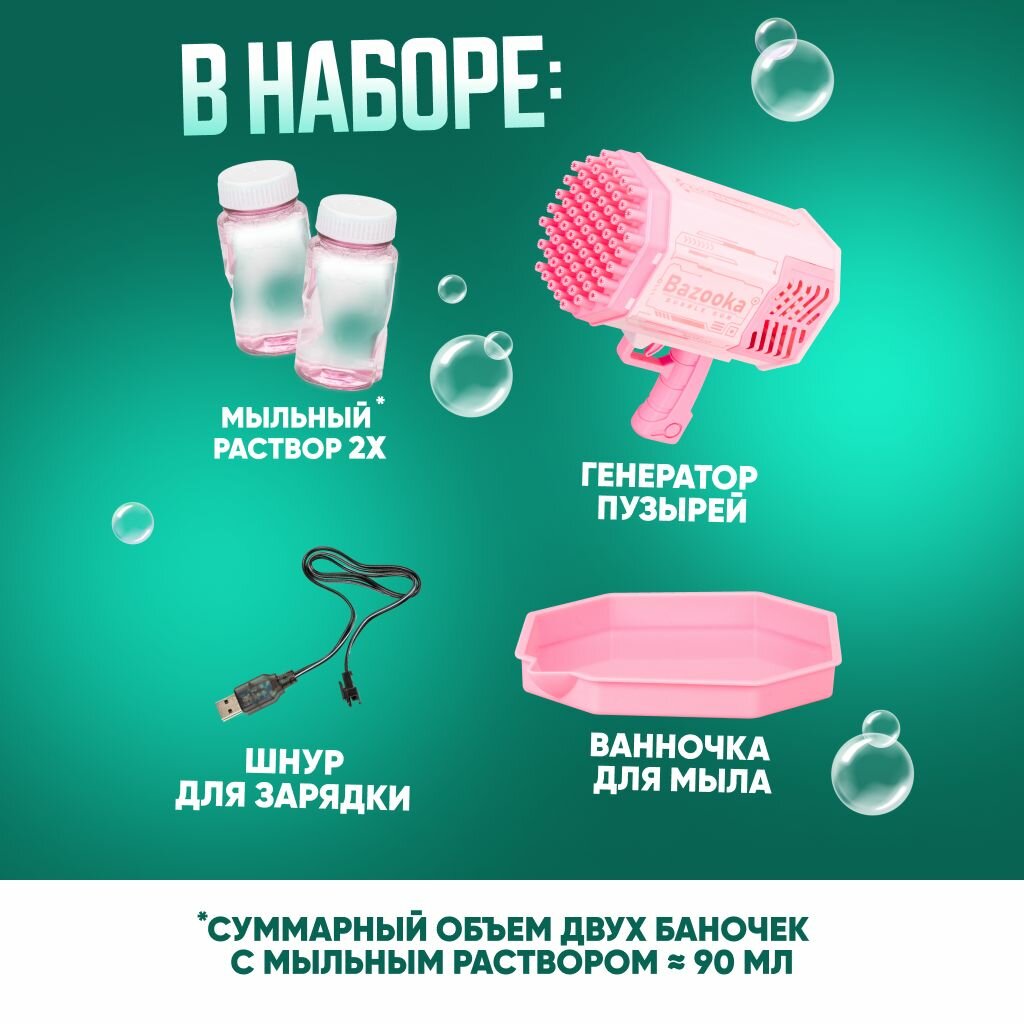 Пистолет генератор для производства мыльных пузырей детский Solmax&Kids +2 раствора, для детей большой миниган, розовый информация: