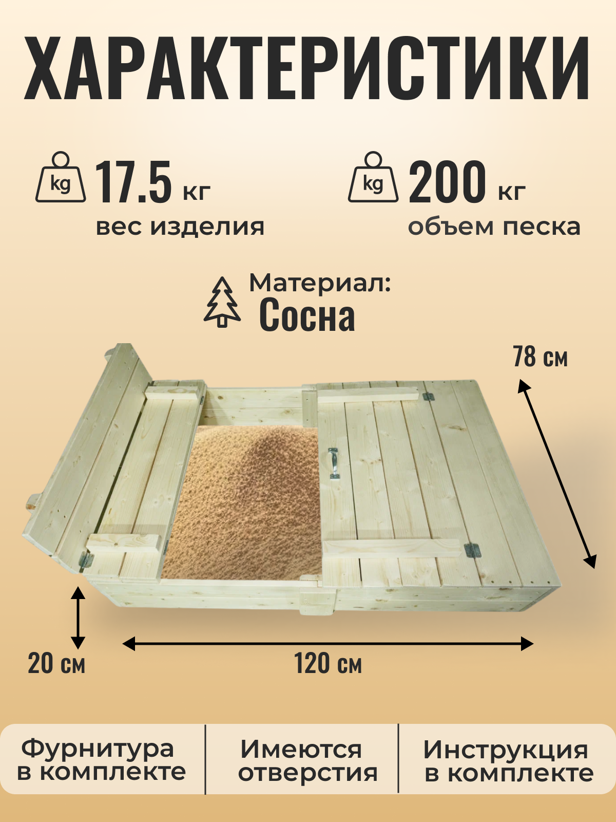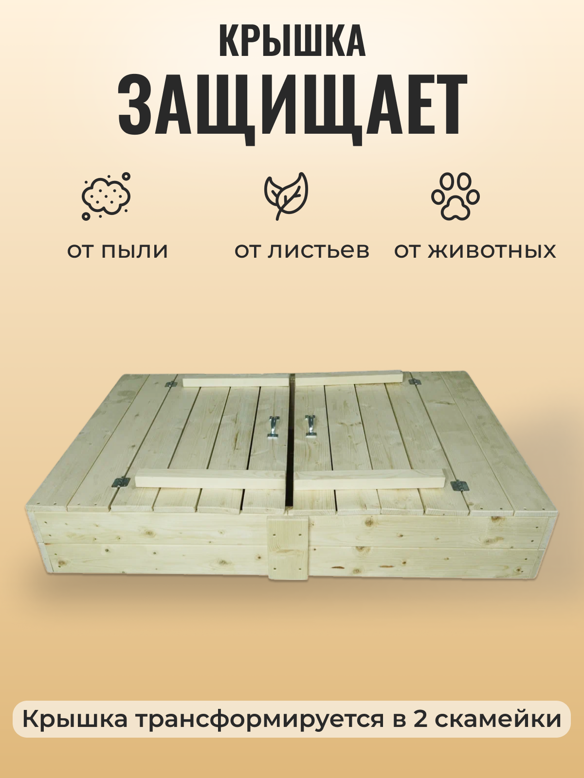 Песочница детская на улицу с крышкой деревянная.Не окрашена информация: