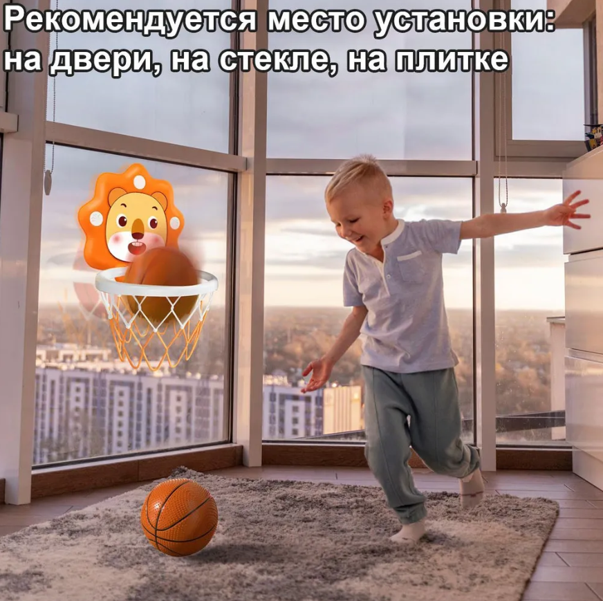 | В комплекте | баскетбольное кольцо, мяч, насос, крепление на липучках и присосках |
