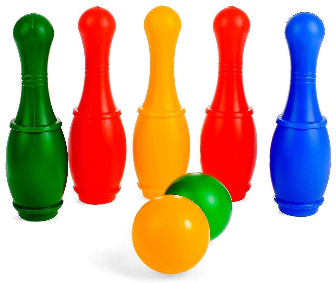 10 цен на Цветной боулинг "Набор 34", детский игровой набор из 5 пластиковых кеглей и 2 шаров