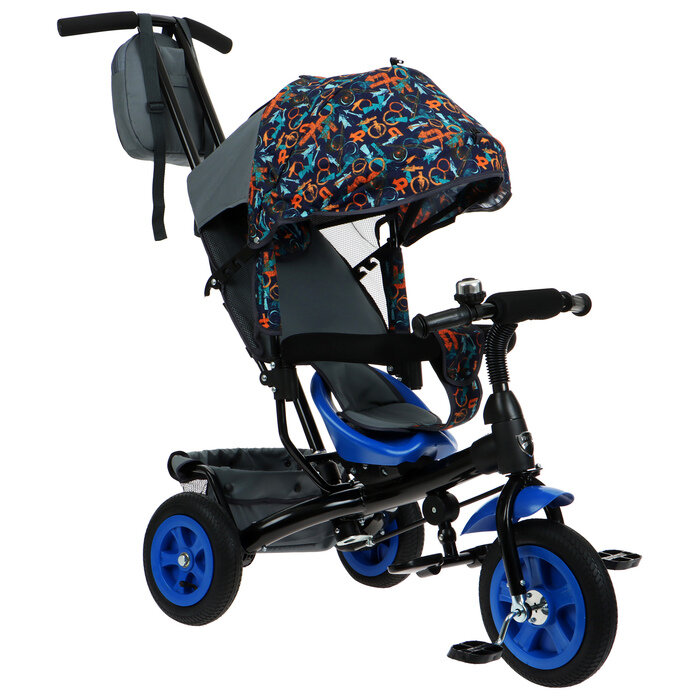 Велосипед детский 6601, с ручкой, 3-колесный, складной, с козырьком