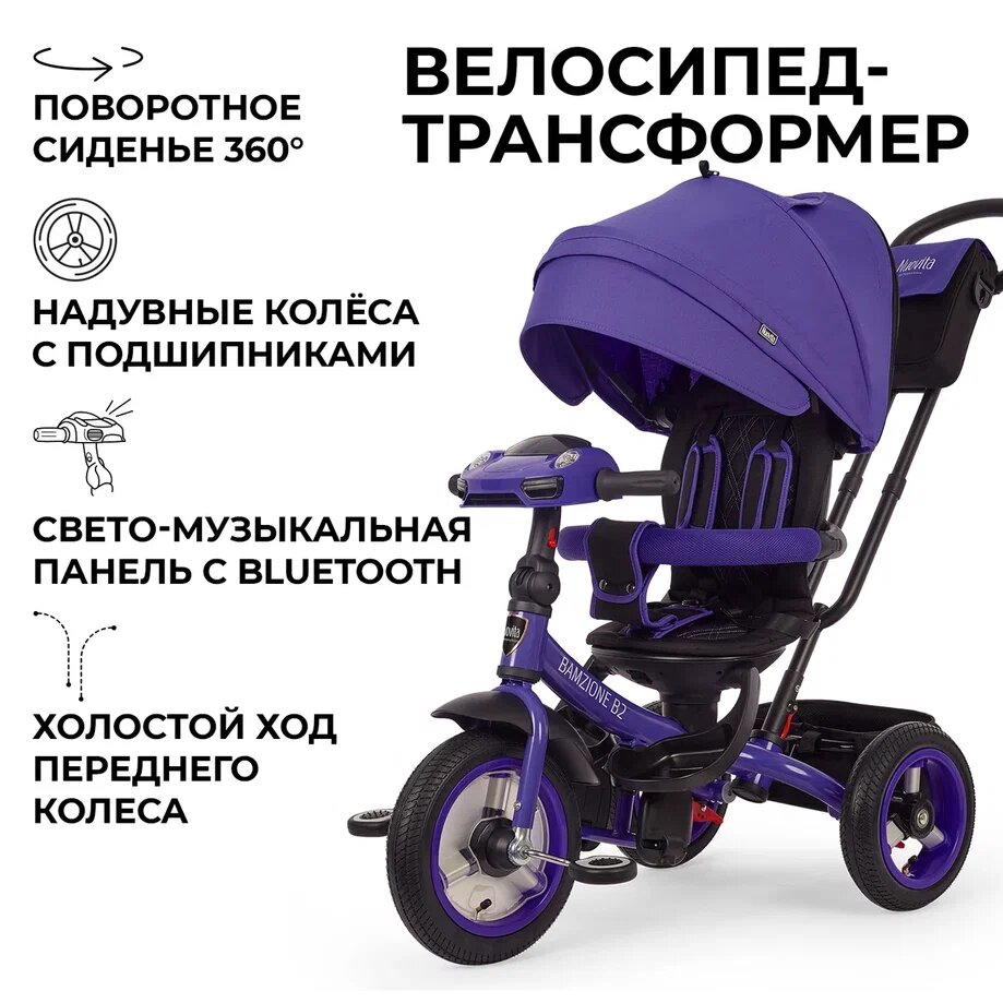 Велосипед детский трехколесный Nuovita Bamzione B2(Very Pery/Лавандовый) информация: