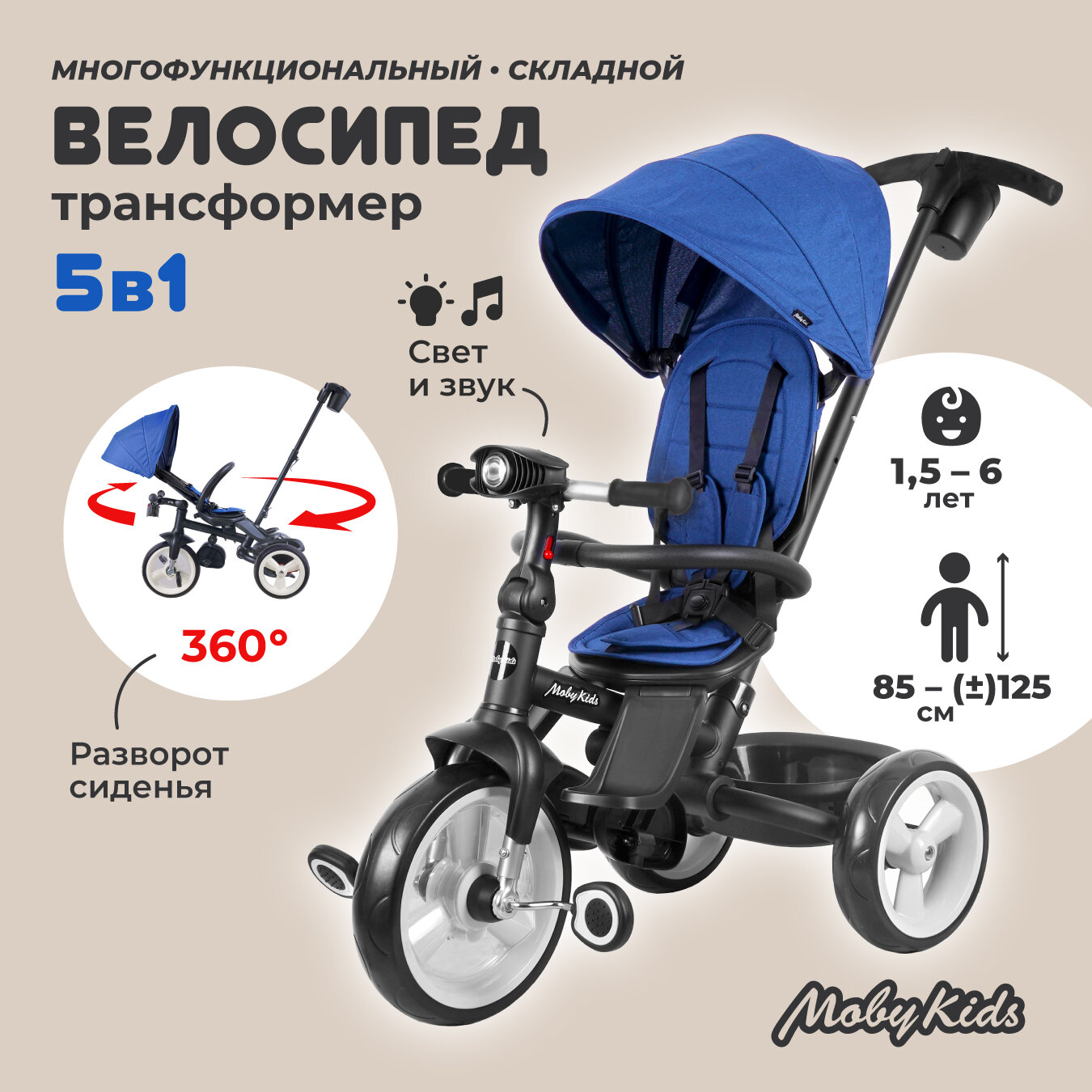 Складной трёхколёсный велосипед 5 в 1 Moby Kids Pioneer 360° 12x10 EVA со светом и музыкой 649369 информация: