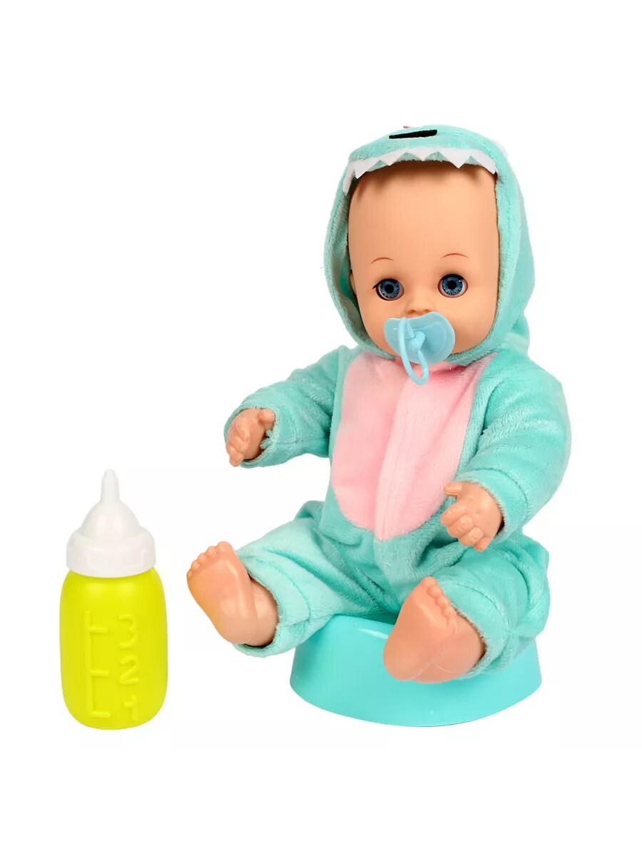 10 цен на Пупс кукла 30 см в костюме динозаврика с аксессуарами бутылочка, горшок / 1 шт