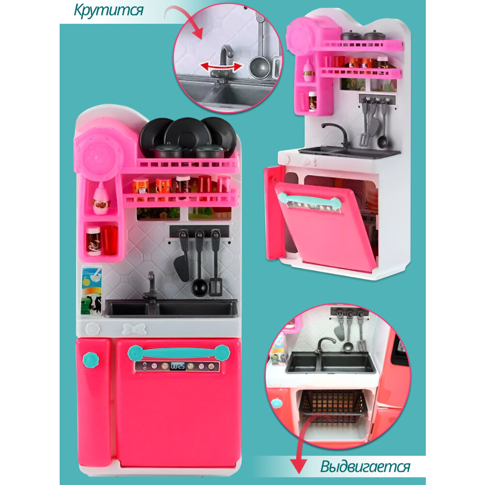 Игрушка детская кухня для кукол со светом и музыкой на батарейках, мебель в домик для кукол