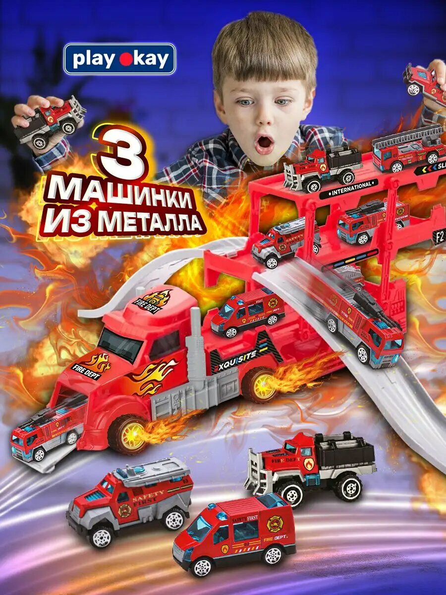 Автовоз с машинками Play Okay, детская игрушка для мальчиков, модельки для малыша, игрушечный транспорт, грузовик 781 ₽