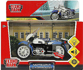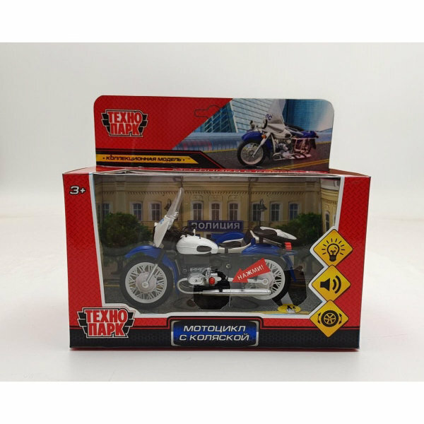 Отзывы на Модель металлическая свет-звук Мотоцикл с коляской Полиция, 13 см. белый, Технопарк SIDEMOTO-13SLPOL-WH