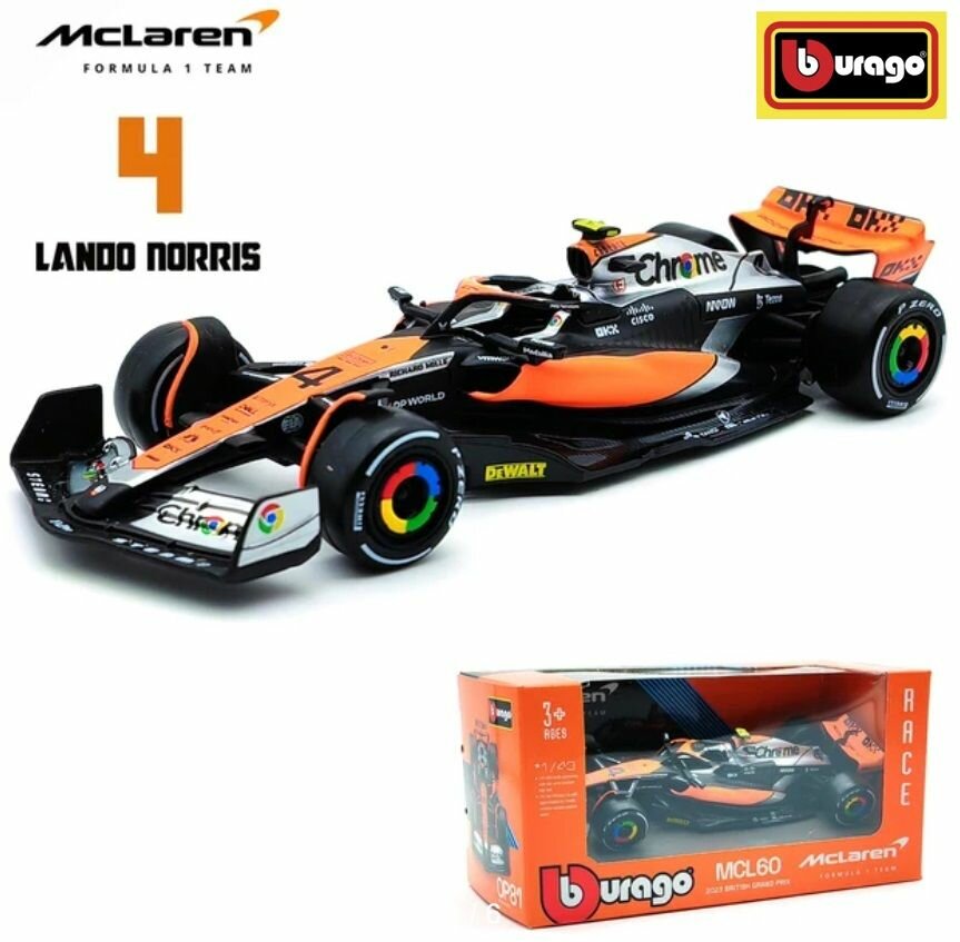 Отзывы на Металлическая коллекционная модель "Bburago" болида "Макларен" Ландо Норрис. (Lando Norris "McLaren" MCL60 №4) Формула-1 сезон 2023. Масштаб 1:43
