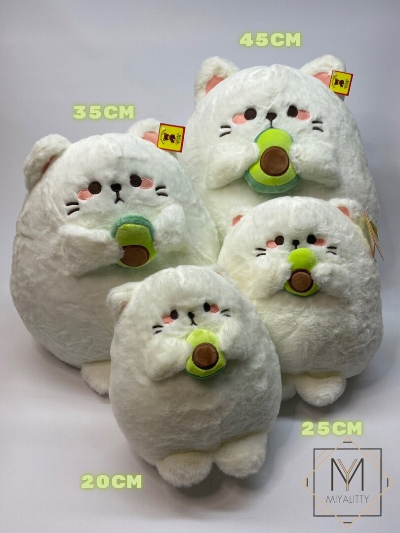 10 цен на Мягкая игрушка плюшевый круглый кот с авокадо 45 см, белый