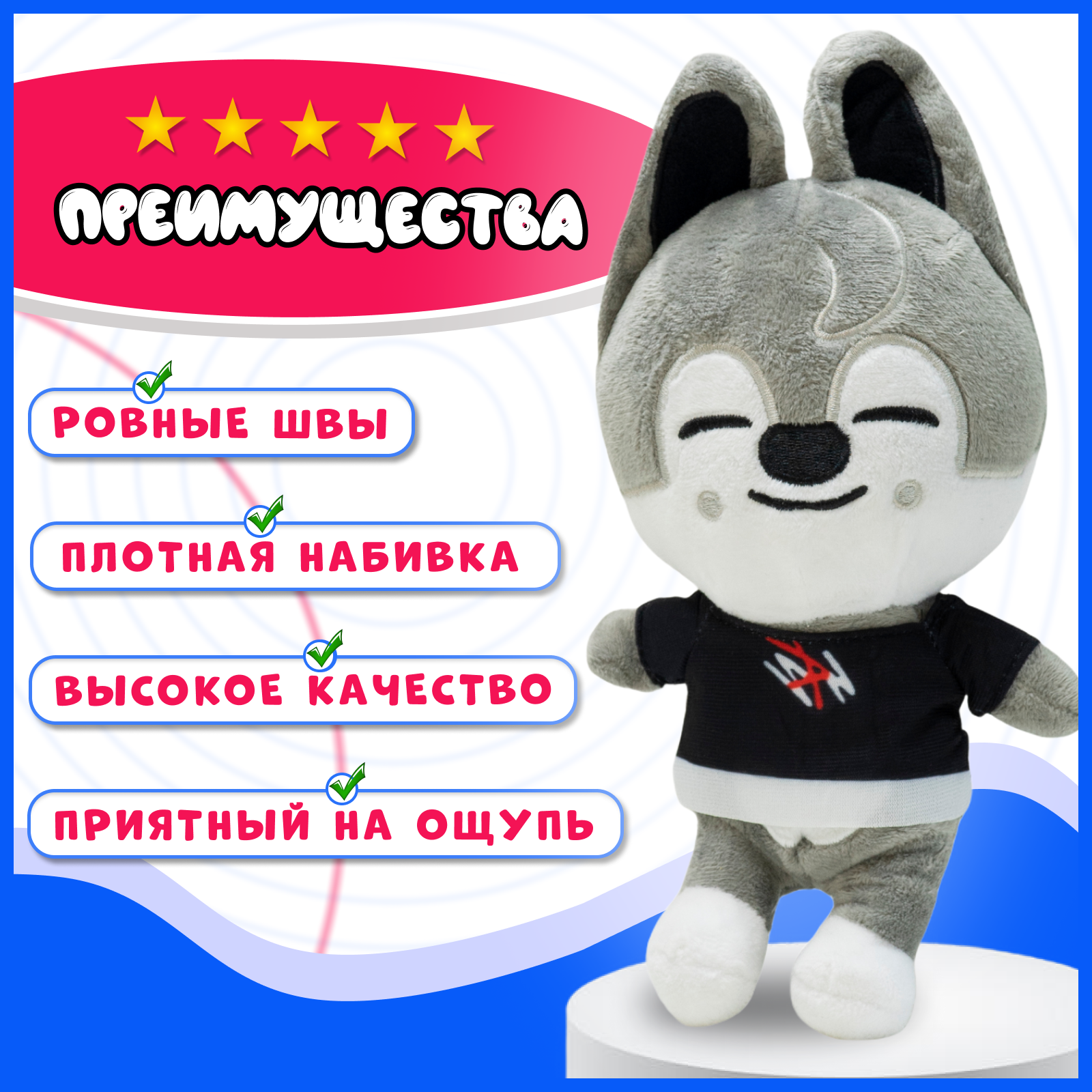 Детская мягкая игрушка волк k-pop Stray kids SKZOO Бан Чан информация: