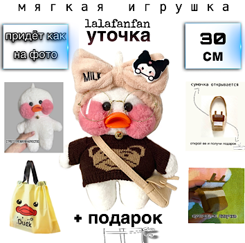 10 цен на премиум уточка в комплекте "Мишка - Куроми" Лалафанфан Лалафан Lalafanfan kidspresent.pb, белая мягкая игрушка, новинка