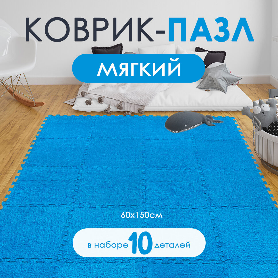 Коврик-пазл Baizheng махровый, упаковка 10 штук, размер 30х30х1,5см, цвет голубой информация: