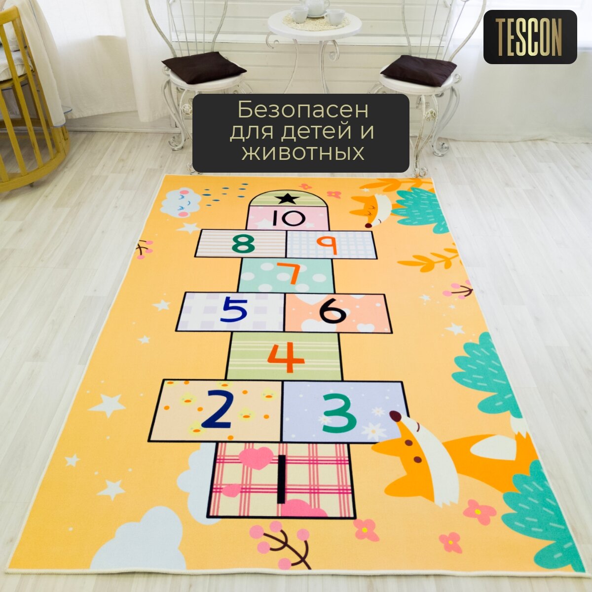 10 цен на Детский безворсовый коврик TESCON "Классики-Лисы" 150х200 см