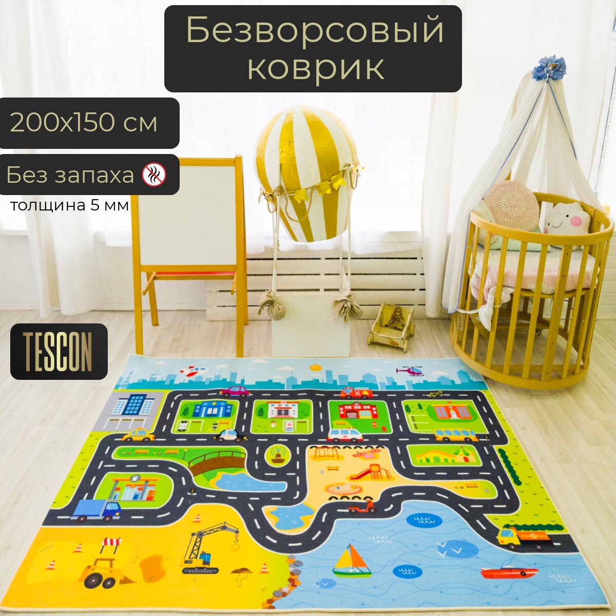 10 цен на Детский безворсовый коврик TESCON "Дорога-Небо" 150х200 см