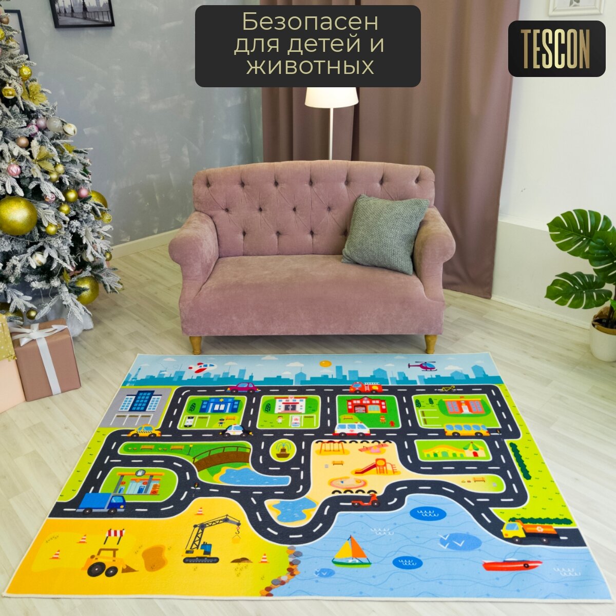 Детский безворсовый коврик TESCON "Дорога-Фонтан" 150х200 см 4 999 ₽