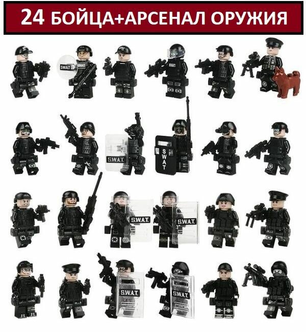Отзывы на Военные Лего фигурки SWAT 24шт. / лего солдаты Спецназ / военные человечки с оружием