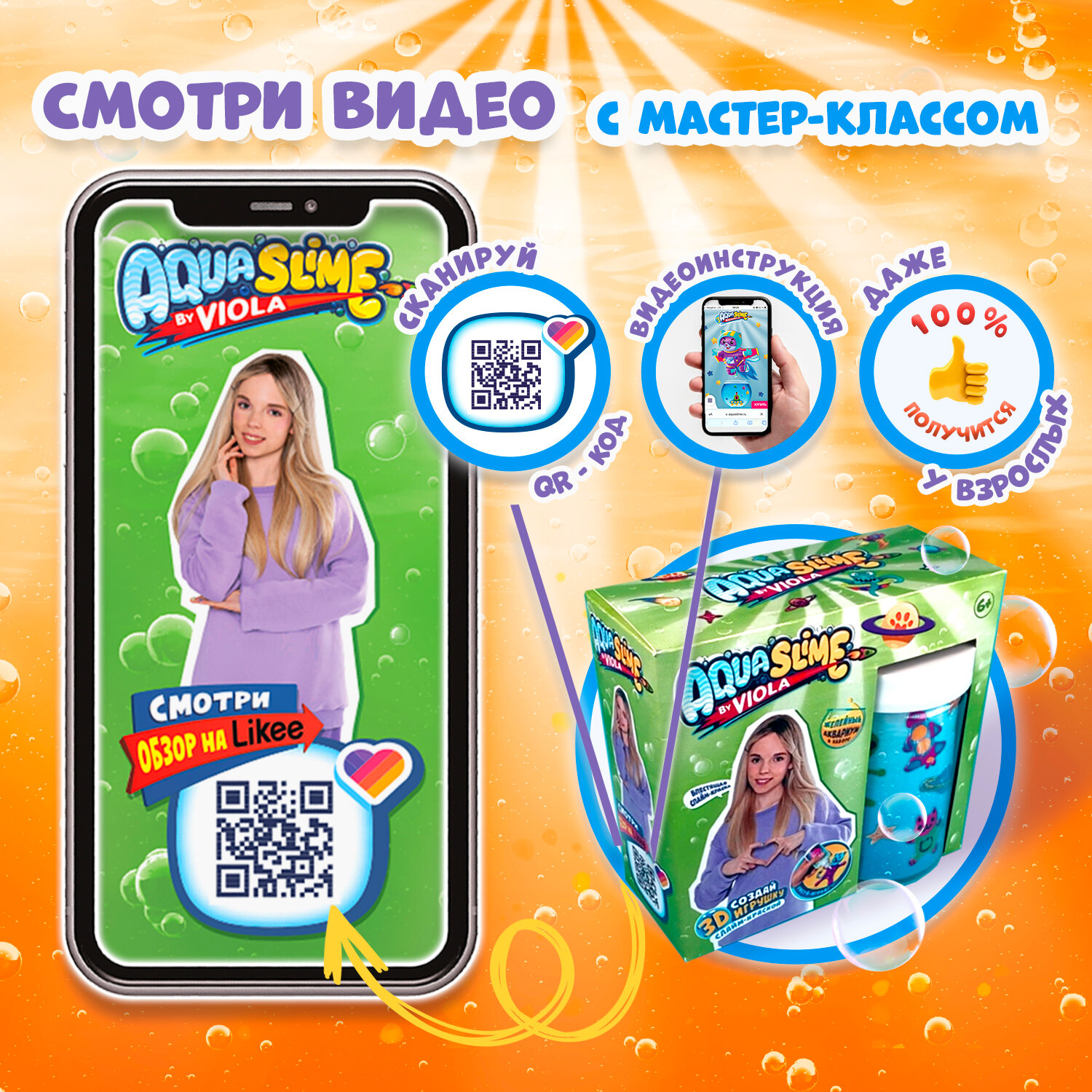 | Комплектация | Аквариум, слайм-краски, гидрогель, волшебный порошок, трафарет, стикеры, автограф блогера |