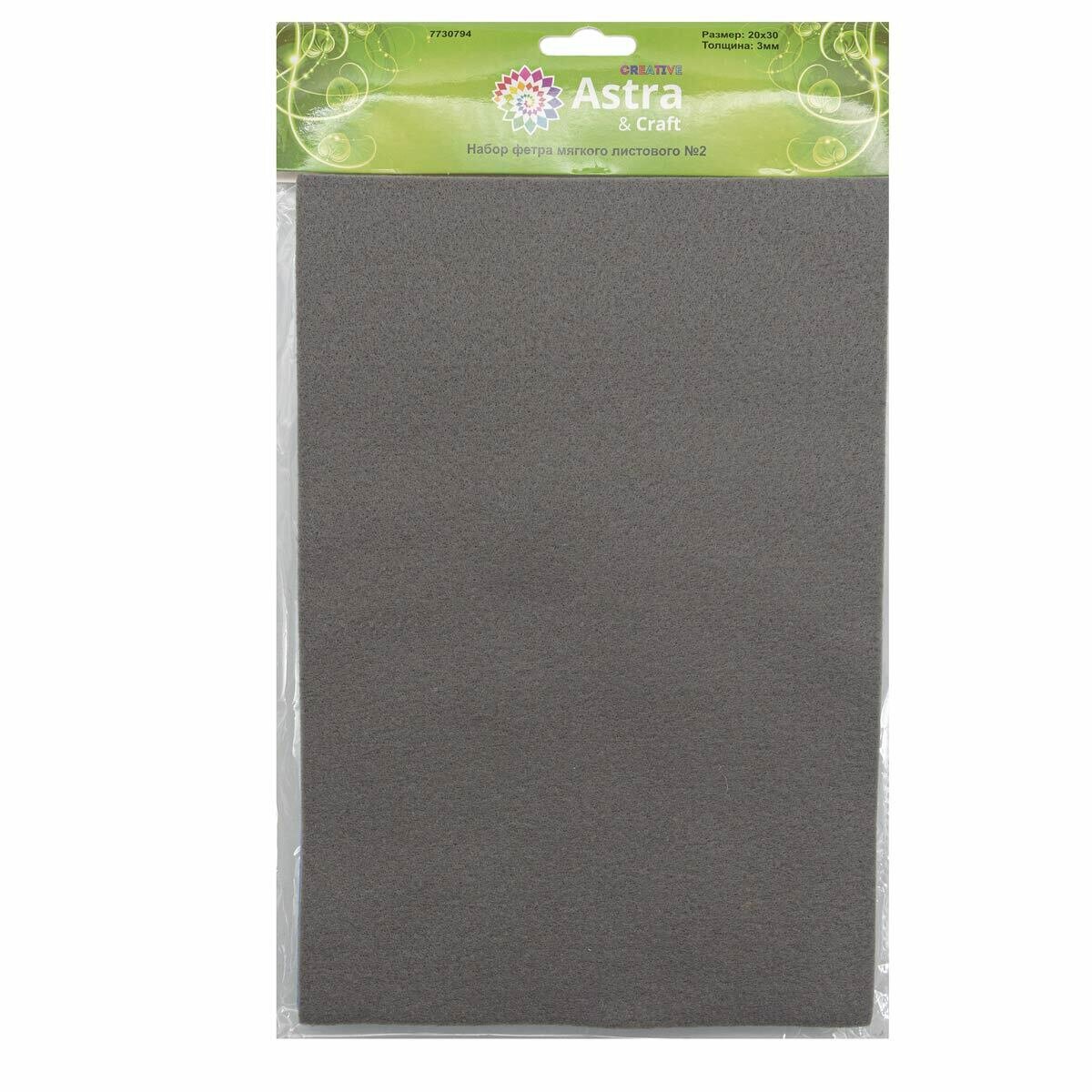 Фетр жесткий листовой Astra&Craft, 1 мм, 20х30 см, 12 шт (15 серый AF898) 393 ₽