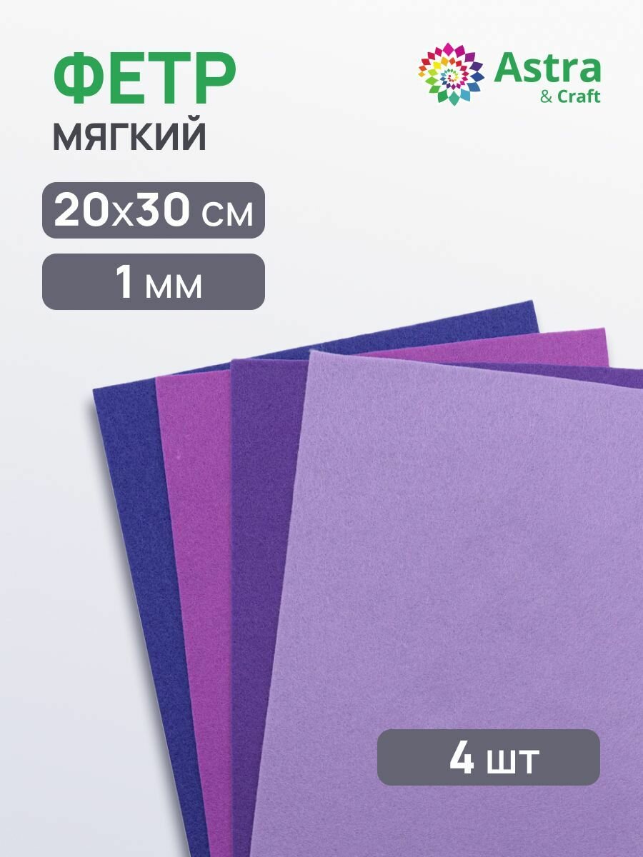 10 цен на Набор фетра мягкого листового ассорти, 1 мм, 20х30 см, 4 шт, Astra&Craft (6)
