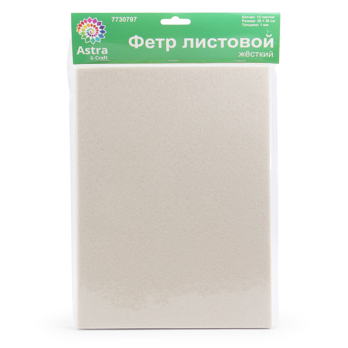 10 цен на Фетр жесткий листовой Astra&Craft, 1 мм, 20х30 см, 12 шт (AF826/YF650 молочный)