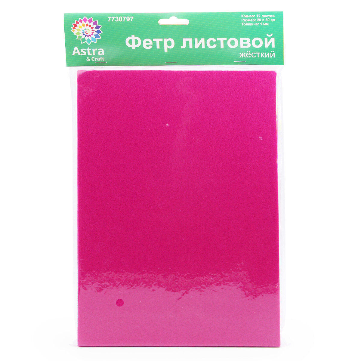 10 цен на Фетр жесткий листовой Astra&Craft, 1 мм, 20х30 см, 12 шт (AF809 фуксия)