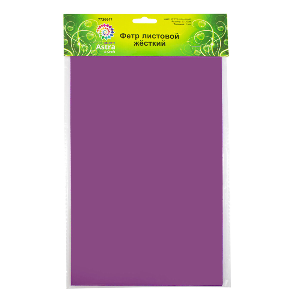 Фетр жесткий листовой Astra&Craft, 1 мм, 20х30 см, 3 шт (YF619 сиреневый) информация: