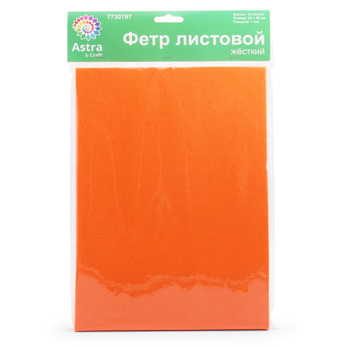 10 цен на Фетр жесткий листовой Astra&Craft, 1 мм, 20х30 см, 12 шт (AF904 ярко-оранжевый)