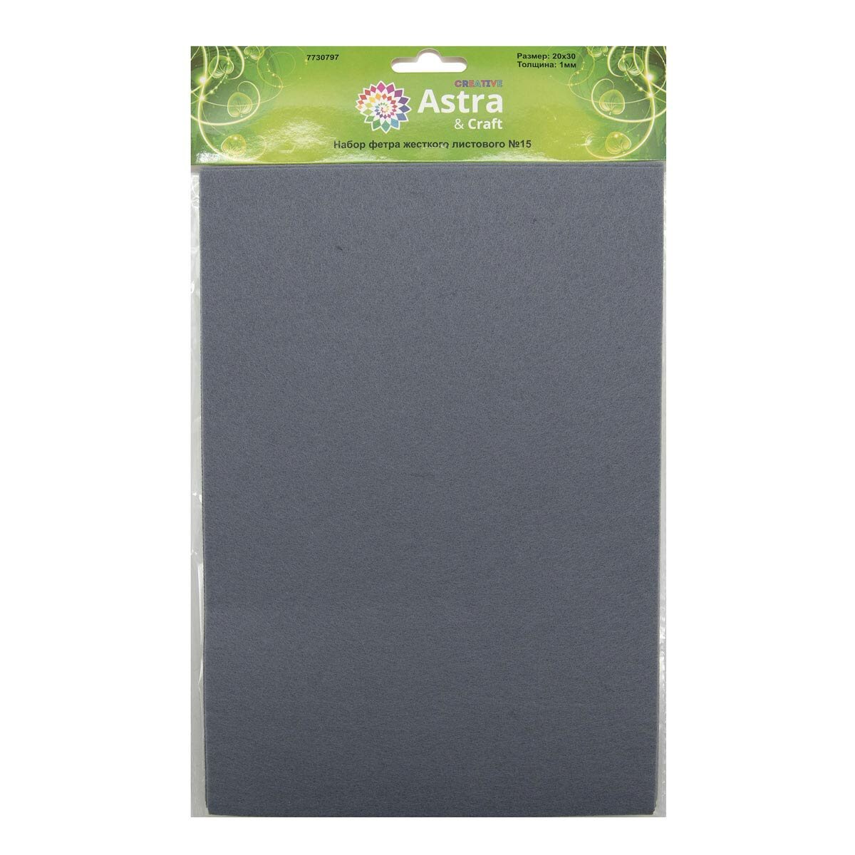 Фетр жесткий листовой Astra&Craft, 1 мм, 20х30 см, 12 шт (15 серый AF898) информация: