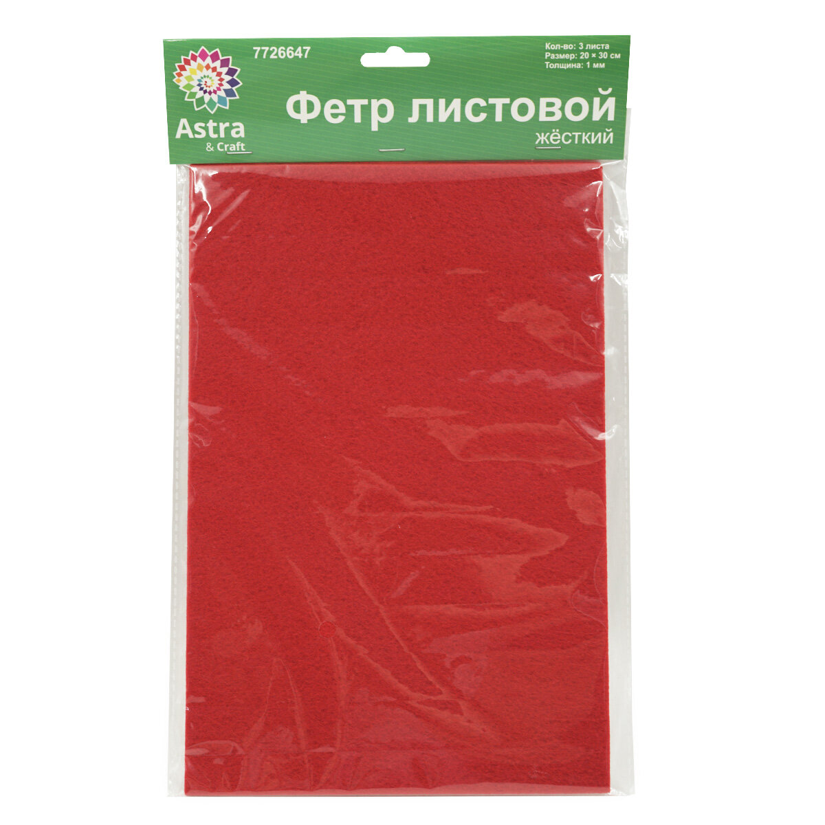 10 цен на Фетр жесткий листовой Astra&Craft, 1 мм, 20х30 см, 3 шт (AF801/YF601 алый)