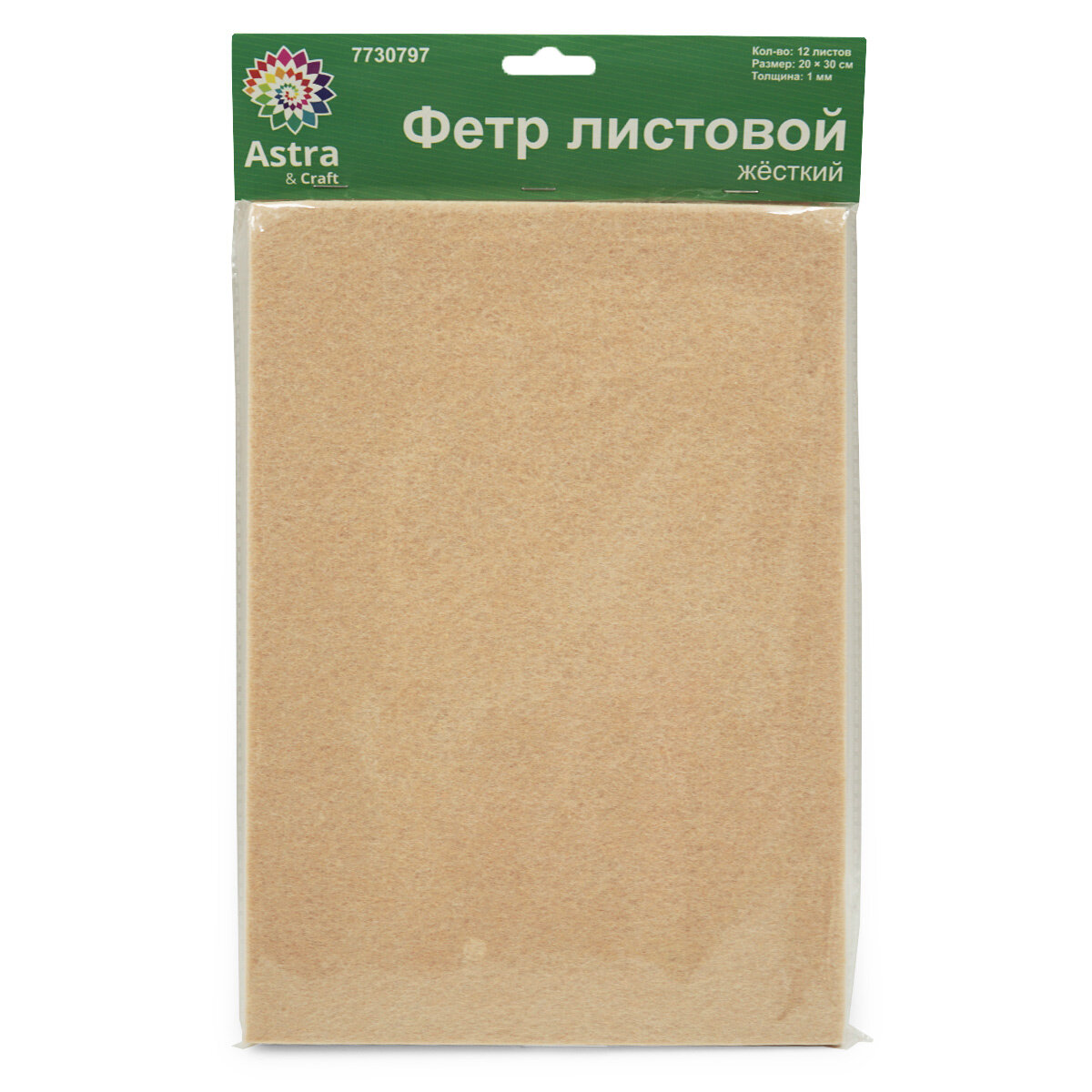 Фетр жесткий листовой Astra&Craft, 1 мм, 20х30 см, 12 шт (AF823 телесный) информация: