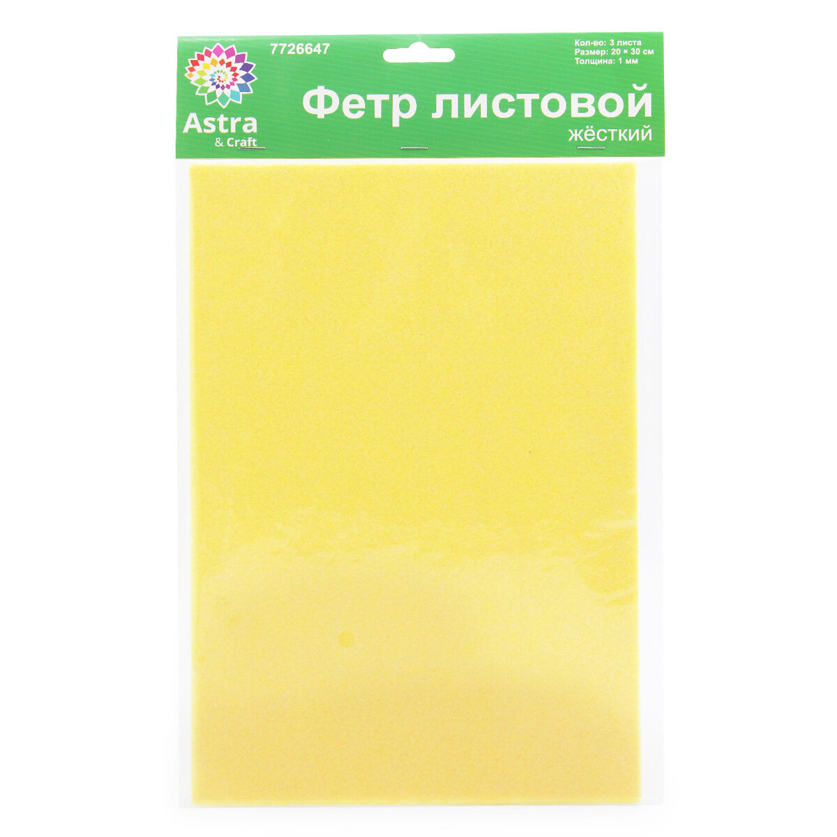 Набор жесткого фетра "Астра" (3 шт) жёлтый, 1 мм, 160 гр, 20х30 см 245 ₽