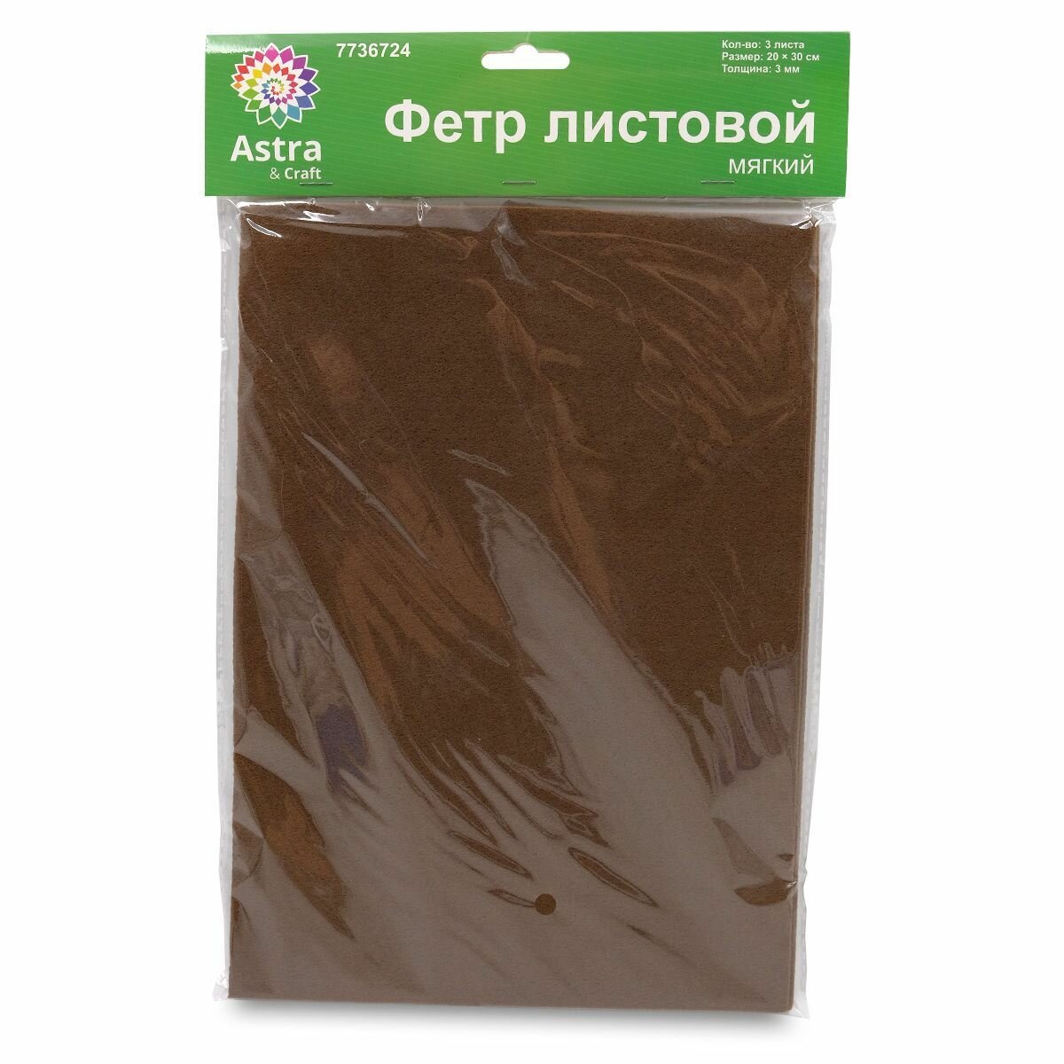 10 цен на Фетр листовой мягкий 3 мм, Astra&Craft, 20х30 см, 3 шт (AF858/YF691 коричнево-бордовый)