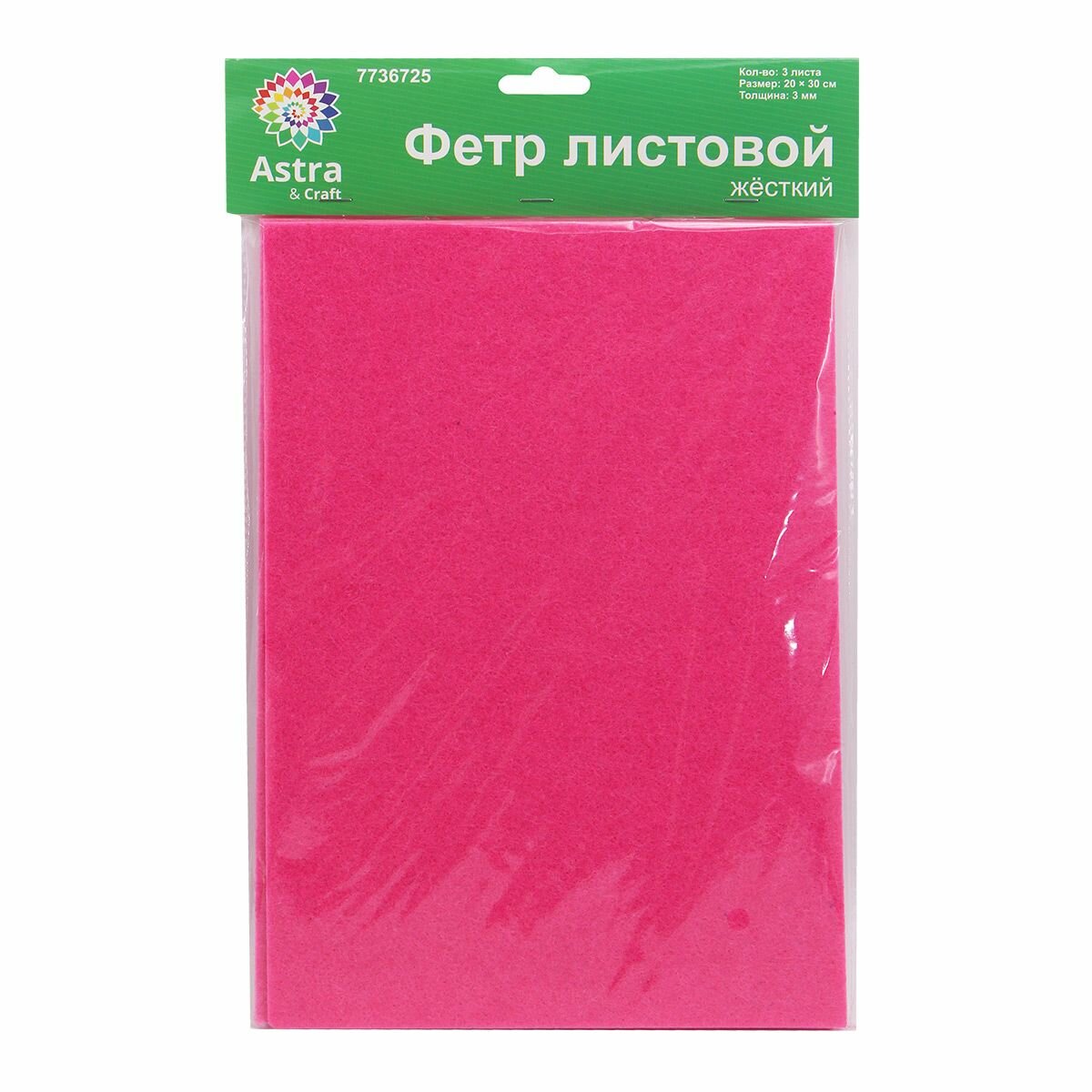 Фетр жесткий листовой Astra&Craft, 3 мм, 20х30 см, 3 шт (AF813 розовый) информация:
