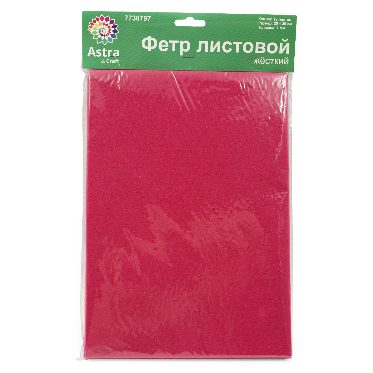 Фетр жесткий листовой Astra&Craft, 1 мм, 20х30 см, 12 шт (8 красный AF801)