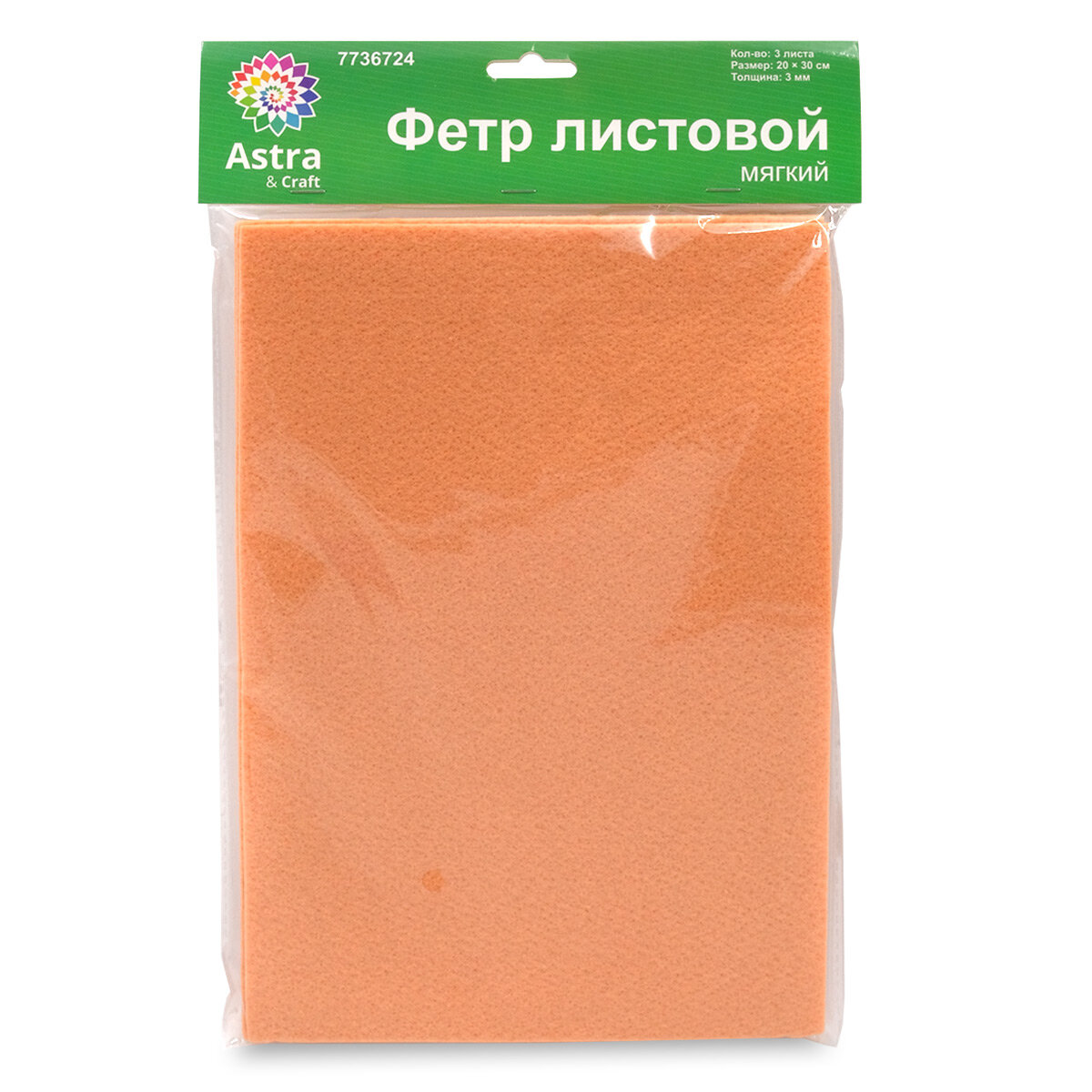 Набор мягкого фетра "Астра" (3 шт) оранжевый, 3 мм, 400 гр. 20х30 см 776 ₽