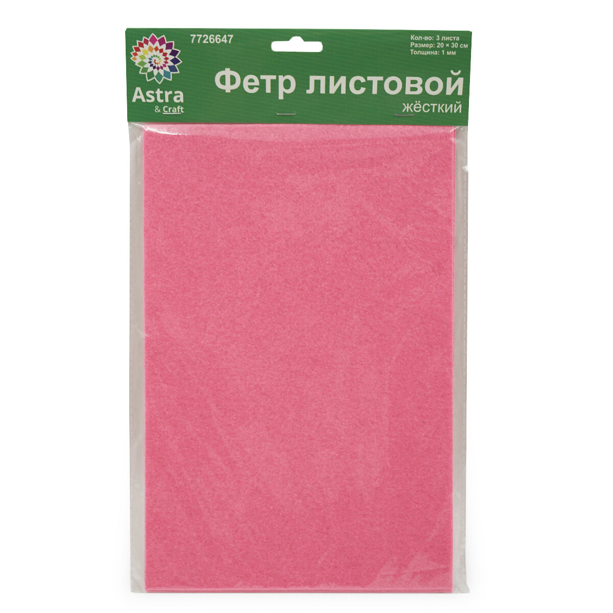 Фетр жесткий листовой Astra&Craft, 3 мм, 20х30 см, 3 шт (AF813 розовый) 281 ₽