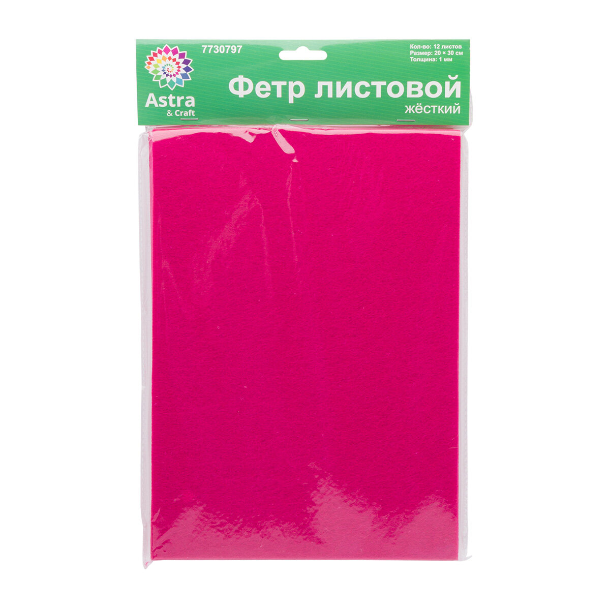 Фетр жесткий листовой Astra&Craft, 1 мм, 20х30 см, 12 шт (AF809 фуксия) 400 ₽