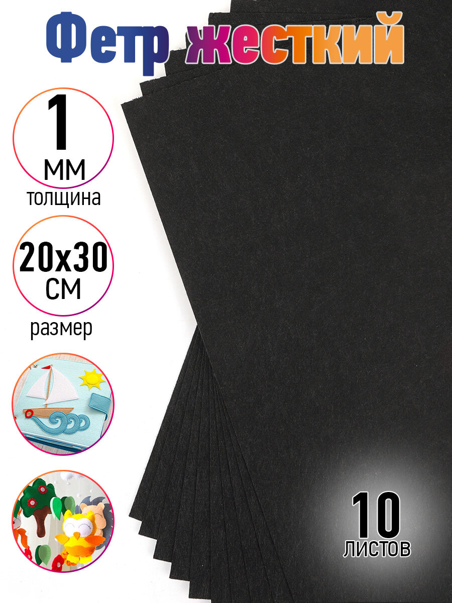 Фетр жесткий 1 мм 20х30 см черный, 10 штук 652 ₽