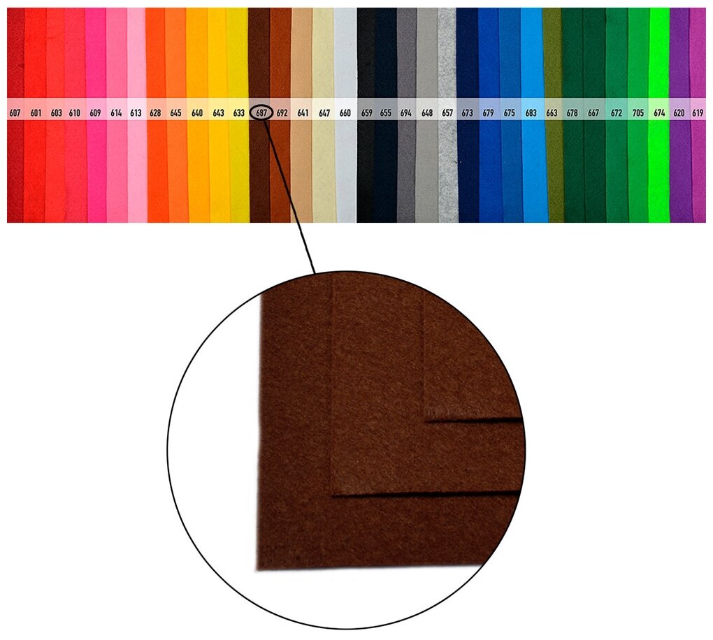 Фетр жёсткий 20х30см, цвет 687 коричневый, толщина 1мм, 1021-094, 1 лист информация: