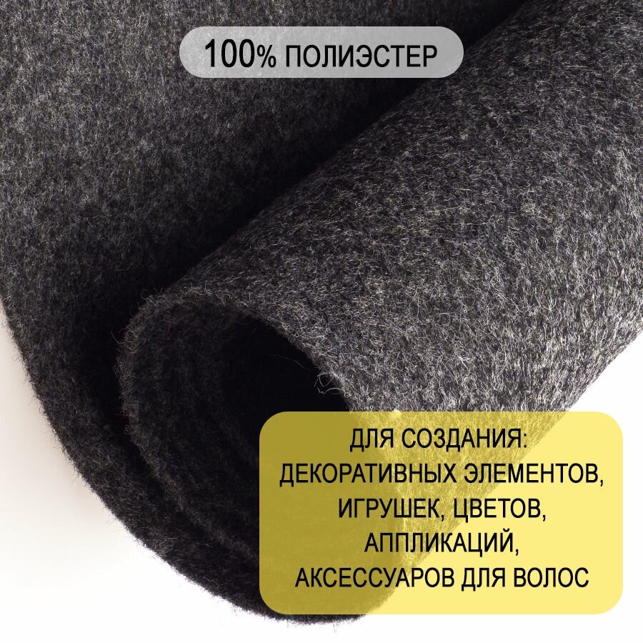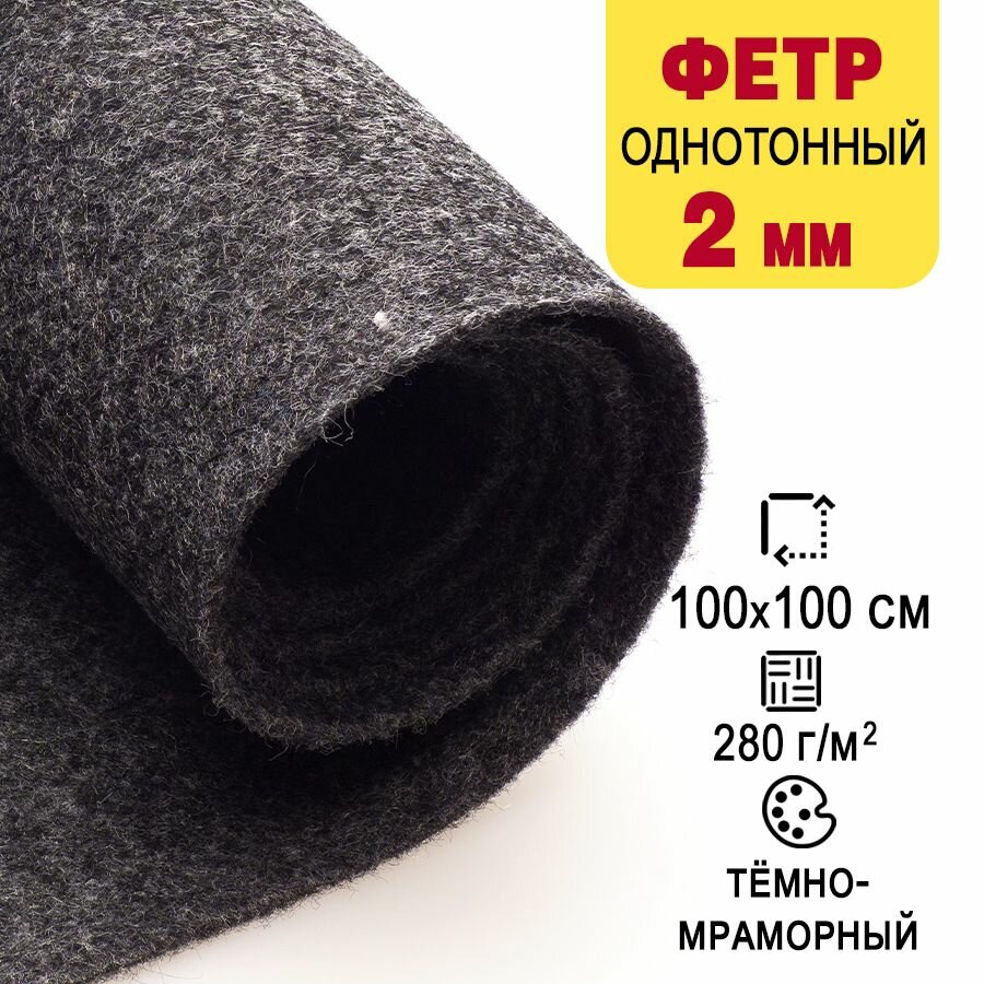 10 цен на Фетр однотонный твердый 2 мм в рулоне 100 х 100 см, темный мраморный С41, плотность 280 г/м2