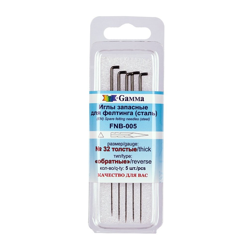 Валяние - иглы и инструменты Gamma FNB-005 Иглы для валяния (фелтинга) запасные в пластиковой упаковке с европодвесом 5 шт №32 грубые (обратные) информация: