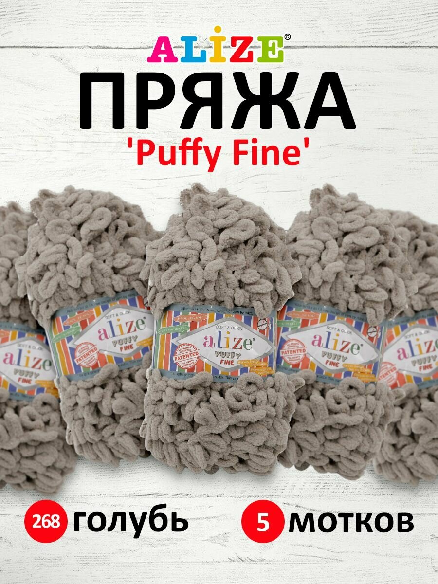 Пряжа для вязания руками с петлями ALIZE 'Puffy Fine' 100г, 14,5м (268 голубь), 5 мотков информация: