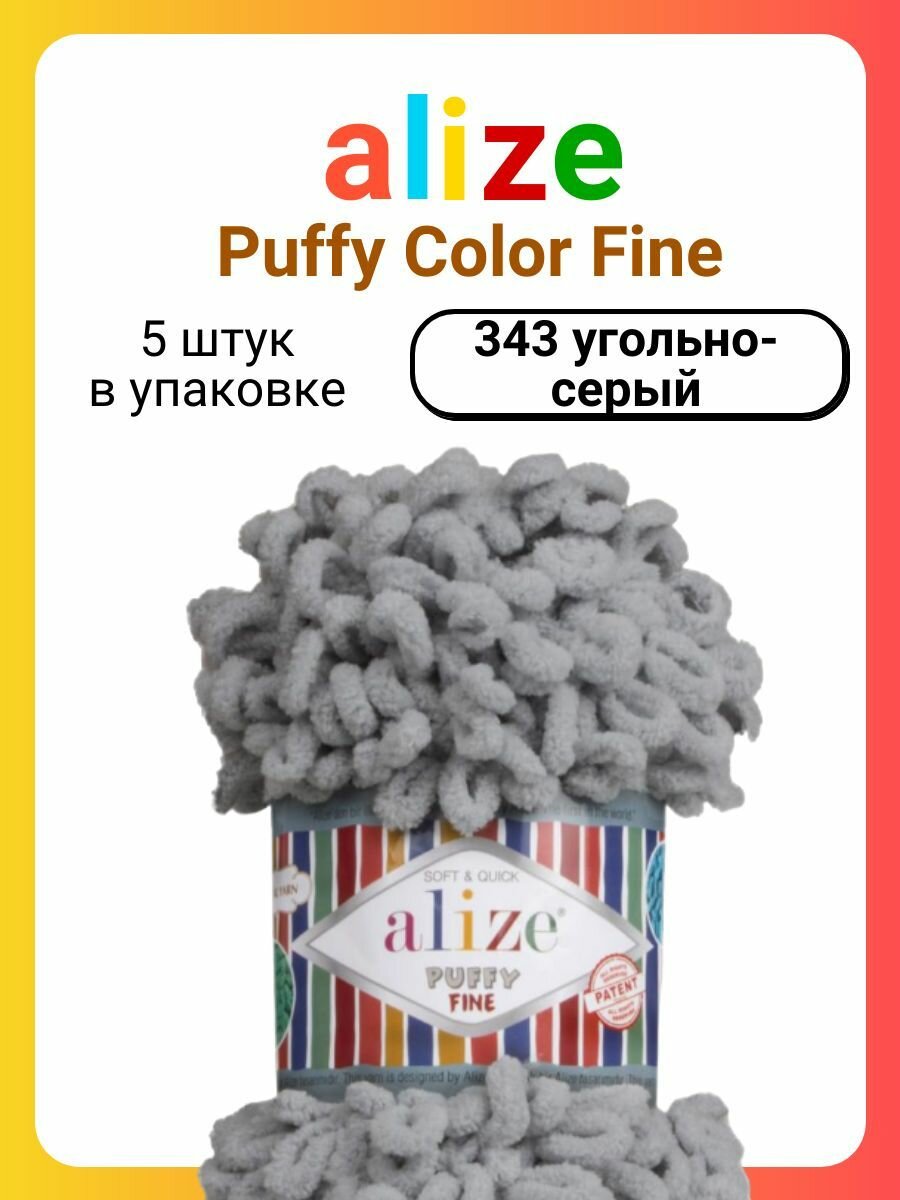10 цен на Пряжа для вязания руками с петлями ALIZE 'Puffy Fine' 100г, 14,5м (343 угольно-серый), 5 мотков