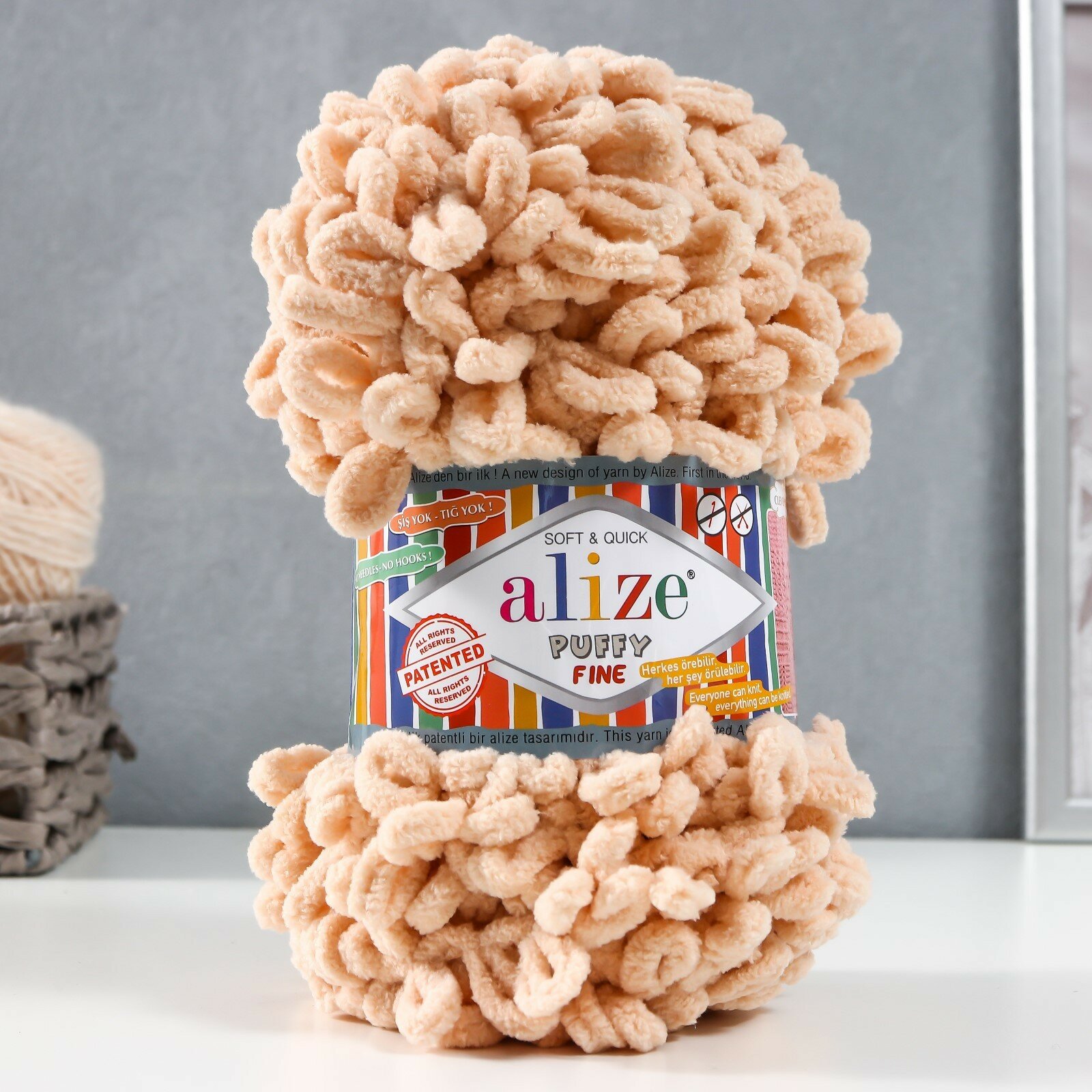 Пряжа для вязания руками с петлями ALIZE 'Puffy Fine' 100г, 14,5м (415 песочный), 5 мотков