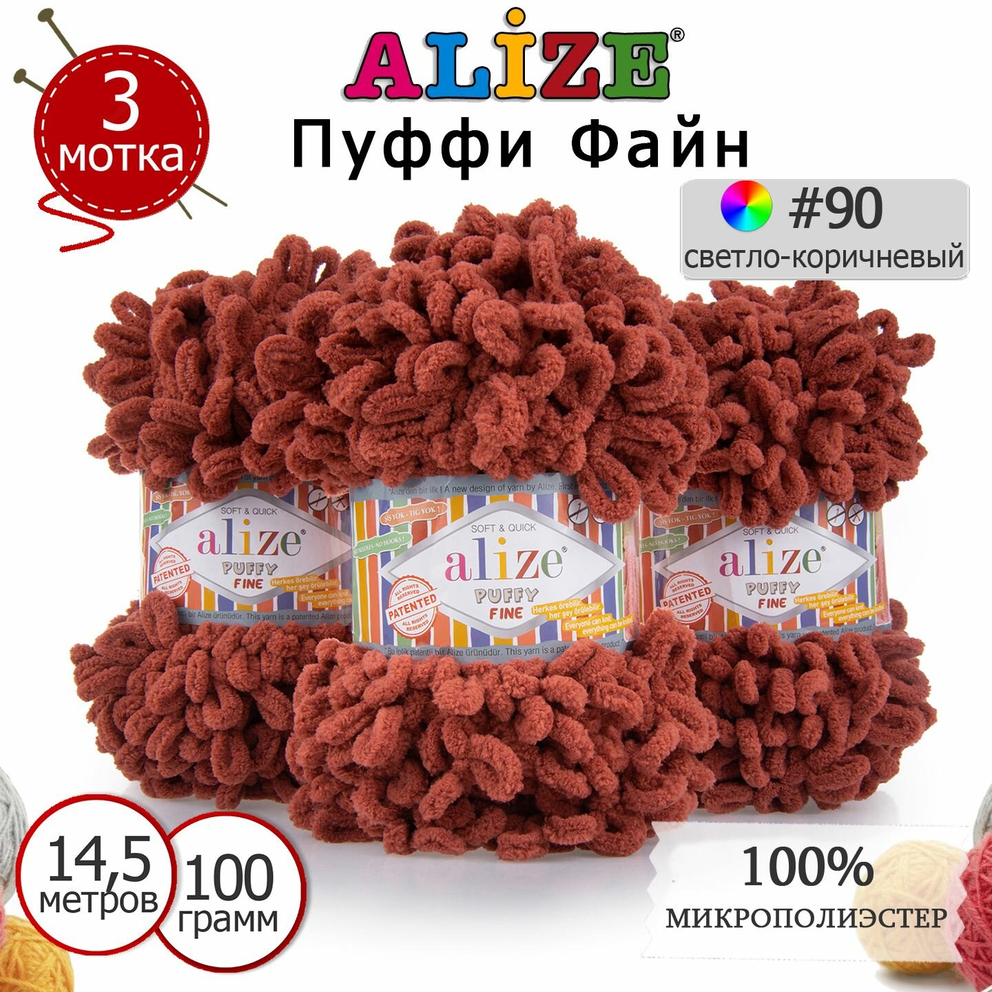 10 цен на Пряжа Alize Puffy fine терракот (90), 100%микрополиэстер, 14.5м, 100г, 3шт